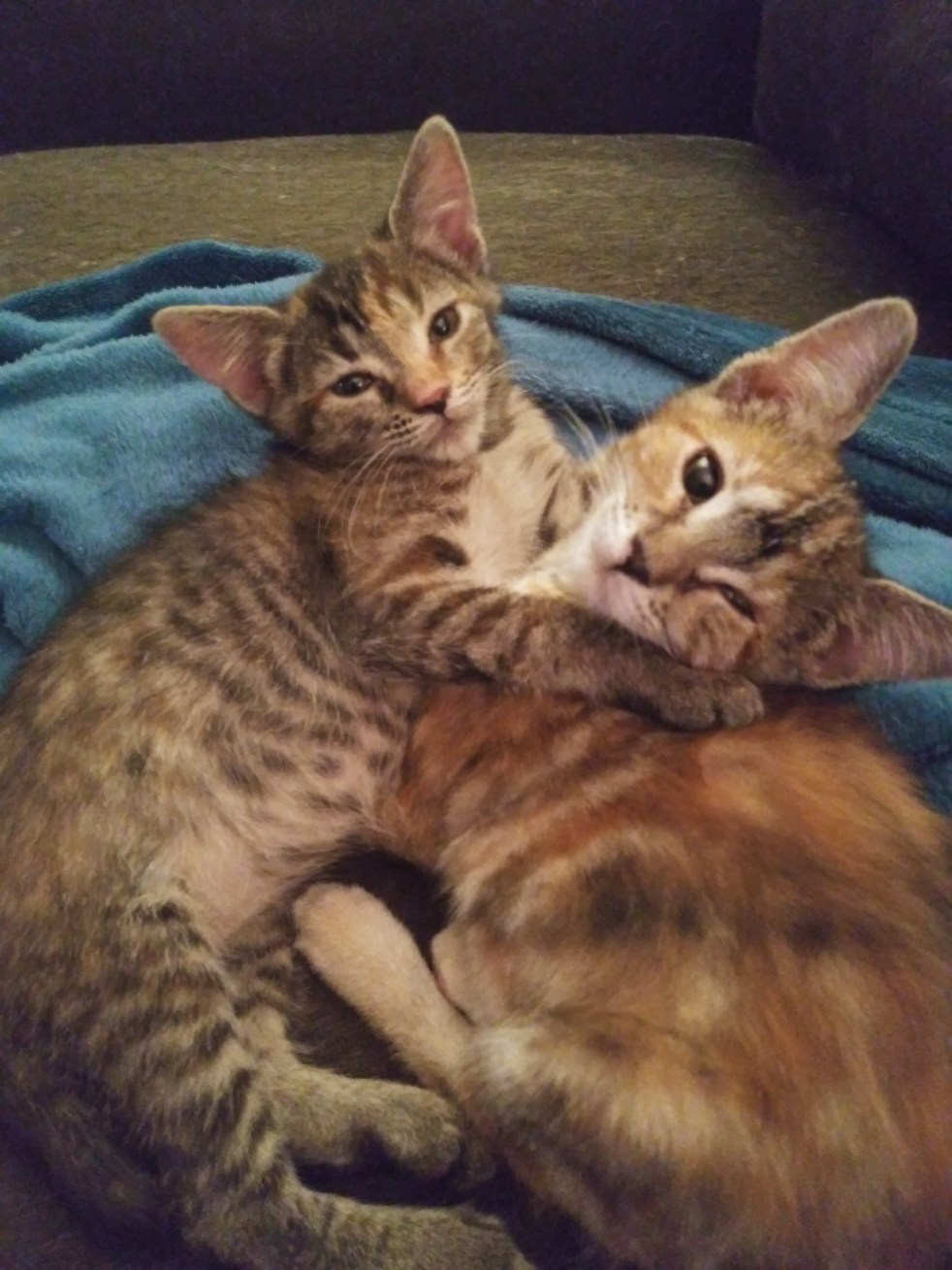 For the last 2 months, I have been fostering two kittens. They came to me at 5 weeks old, underweight with eye infections. Less than one pound each, I could hold one in each hand and have room left over.